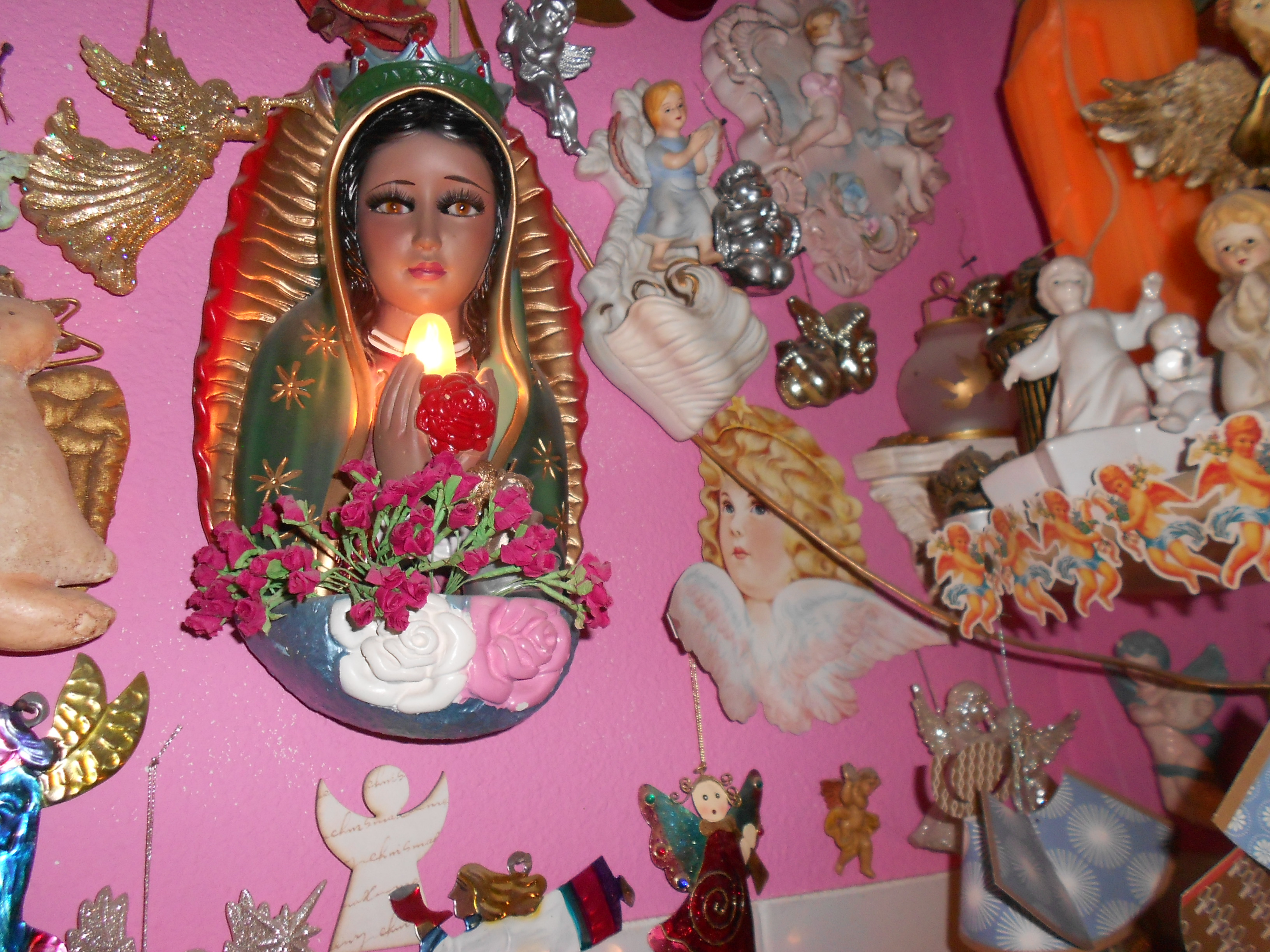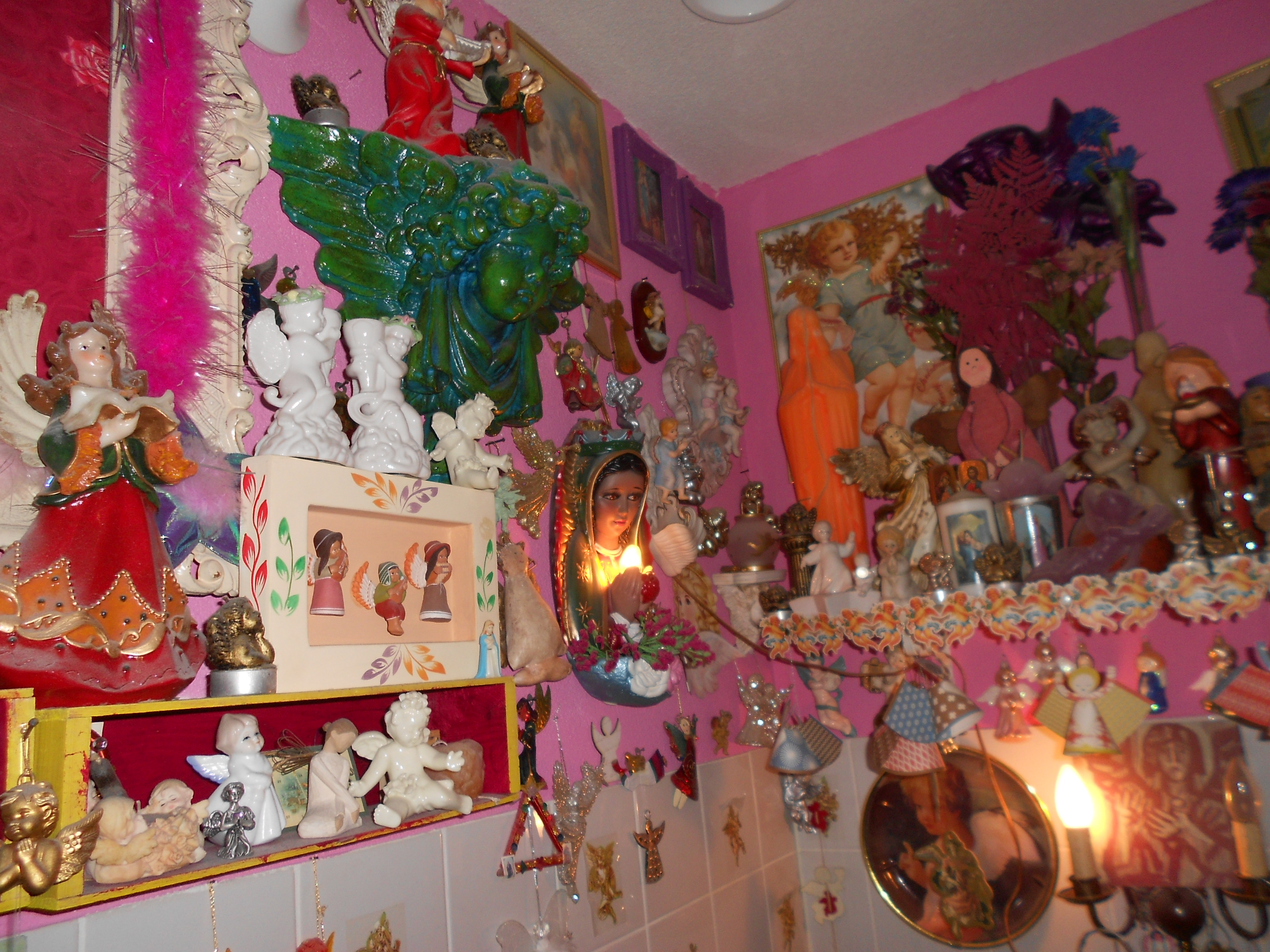 Die Maria op de foto linksonder kijkt alsof ze elk moment in tranen uit kan barsten….dat zou dan wel een mirakel zijn! En dan zou jouw toilet een bedevaartsoord worden….Maar misschien is zij de dans wel ontsprongen. Succes met de verbouwing!!