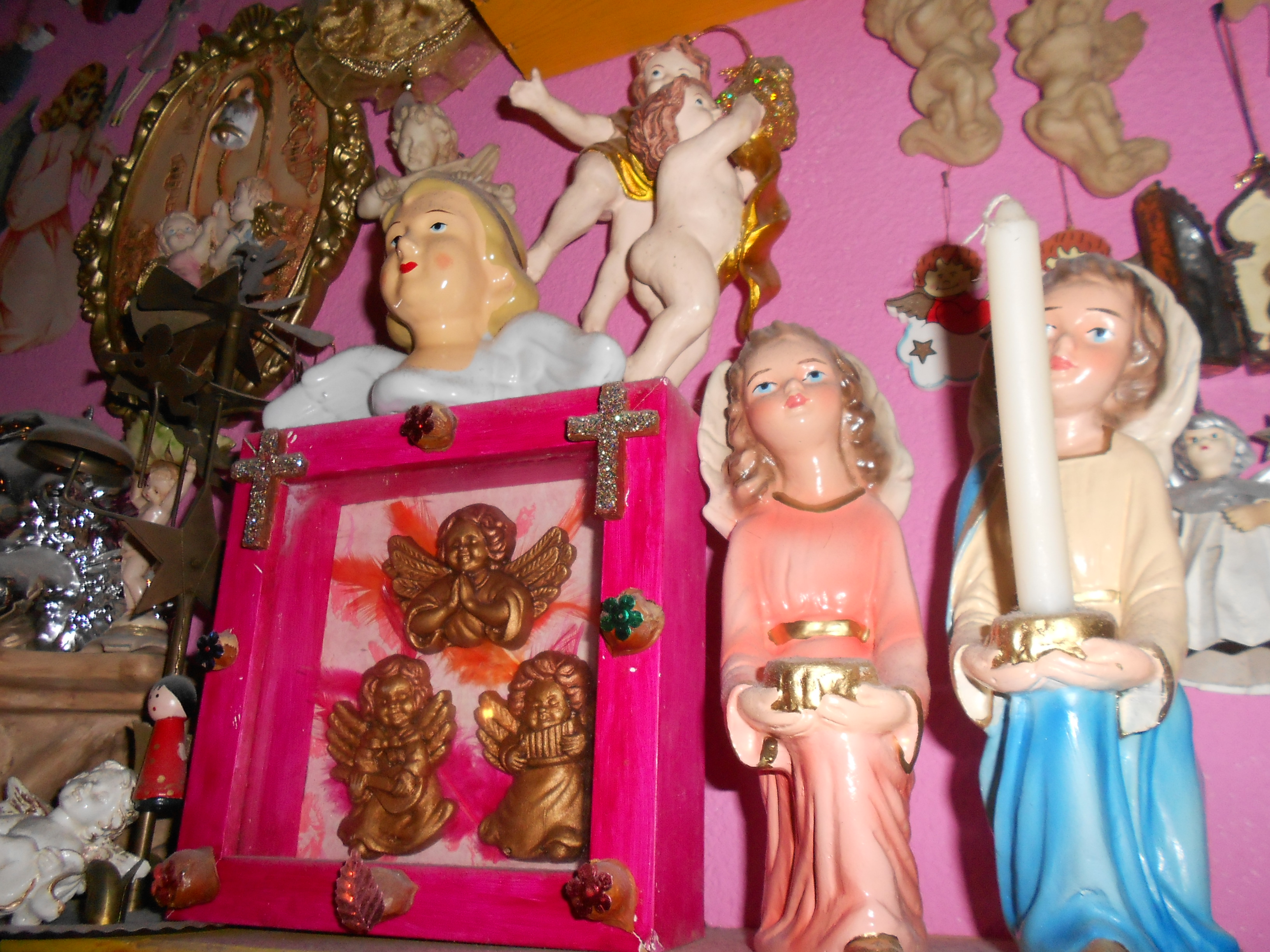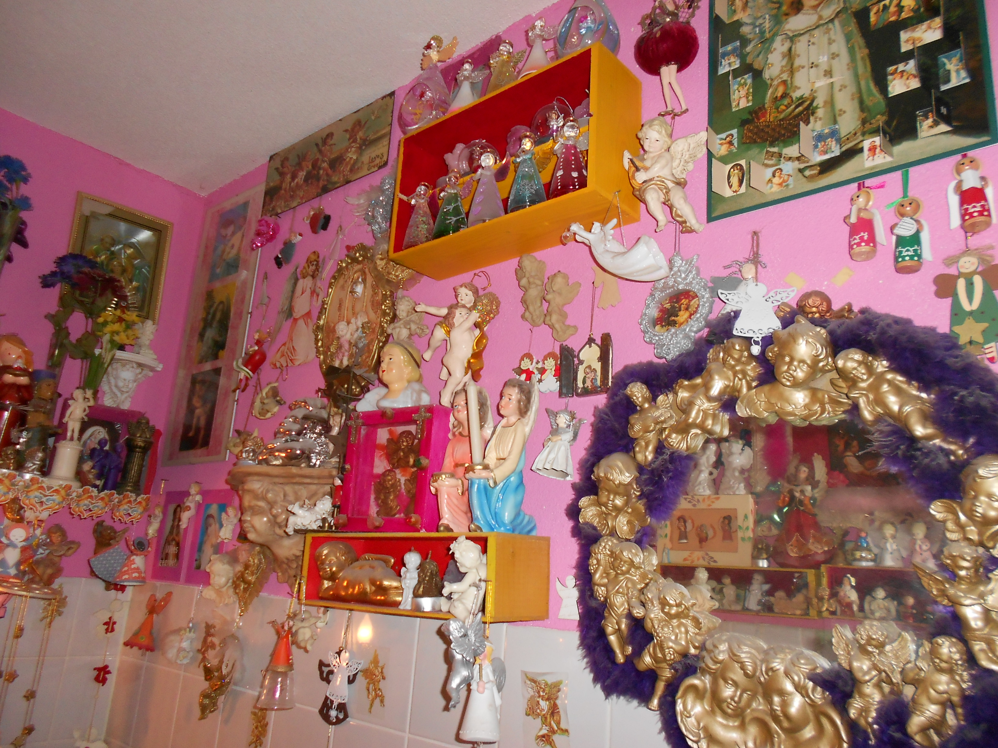 De afgelopen dagen heb ik mijn wc ontmanteld. Dat klinkt misschien een beetje raar, maar in mijn wc woonden zo’n 200 engelen. Daar valt dus best wat aan te ontmantelen. Heerlijk hemels plassen dat je bij ons kon. Maar dat is nu dus voorbij. Want met de komst van een baby (wat fijn dat jullie het nu allemaal weten en ik er vrijuit over kan praten) wordt de wenselijkheid van een babyproof badkamer ineens een stuk groter. Een badkamer waar je niet elke ochtend naar excuses zoekt om een keer niet te douchen omdat het er zo koud is, je handdoek nooit droog wordt, waar het lekt en schimmelt. Een badkamer die zijn naam eer aandoet, een kamer met bad dus, waar het lekker fris en warm is. Zo’n badkamer vereist de ontmanteling van mijn engeltjes, die de afgelopen vijftien jaar tot een enorme en hechte familie is uitgegroeid.